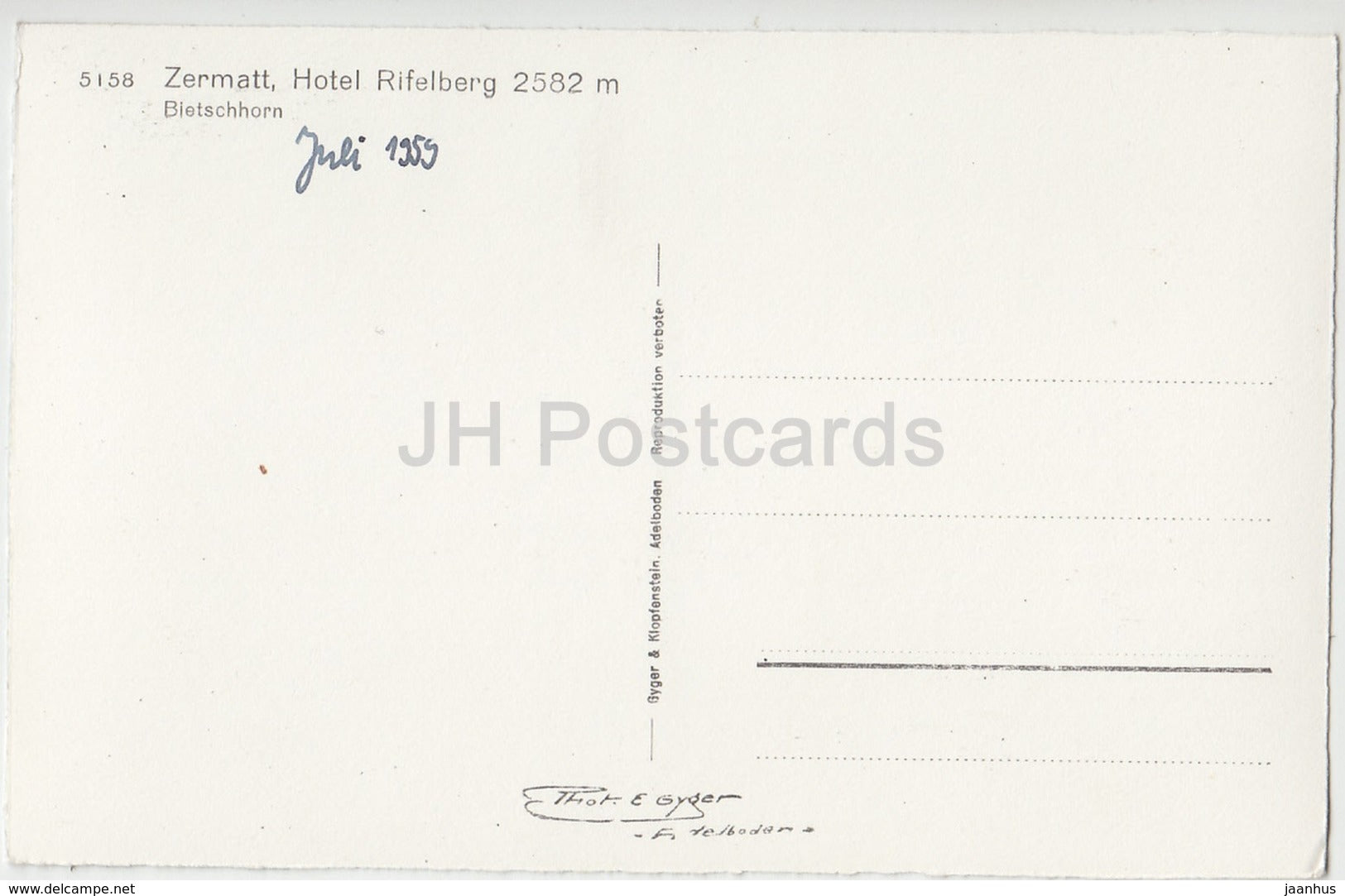 Zermatt - hotel Rifelberg 2582 m - Bietschhorn - Riffelhaus - 5158 - Switzerland - old postcard - unused