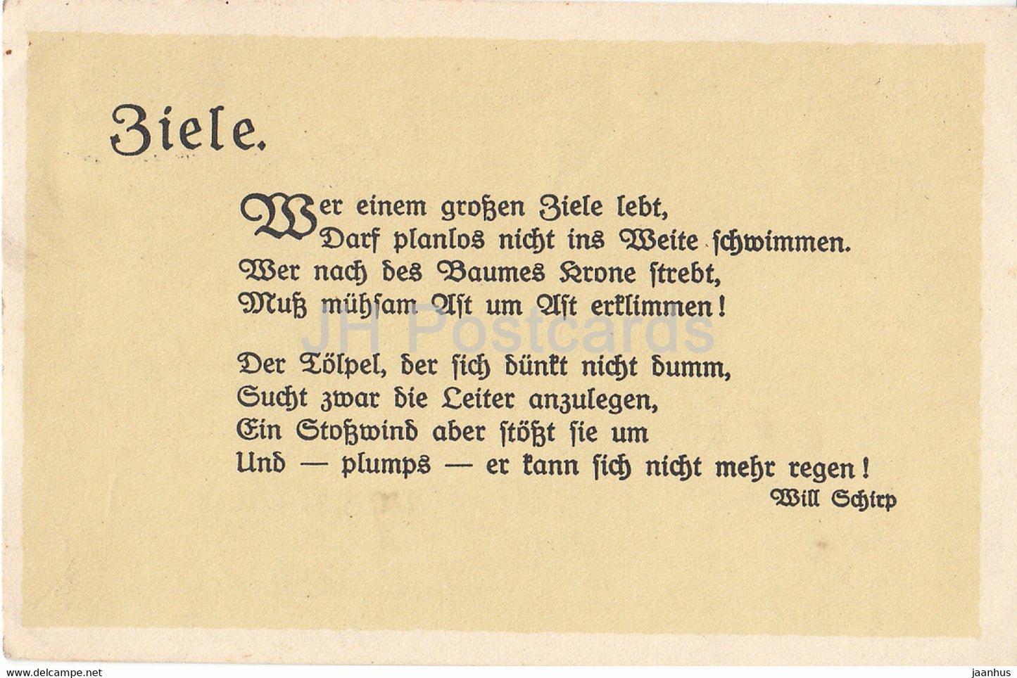 Ziele - Will Schirp - lyrics - old postcard - Switzerland - 1932 - used