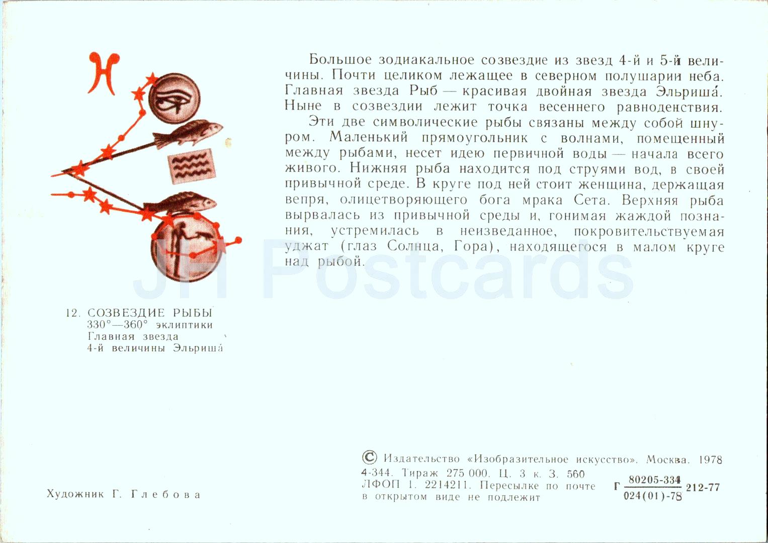 Zodiac signs - Pisces - astronomy - 1978 - Russia USSR - unused